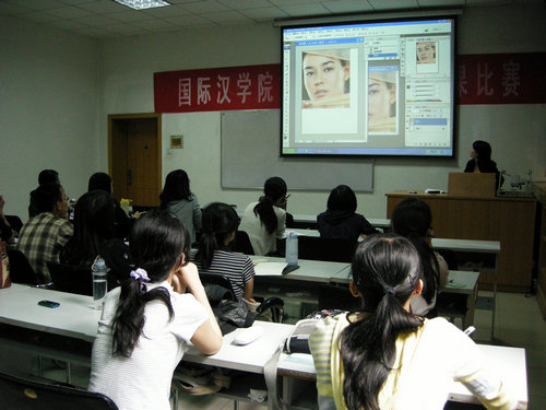 接下来由来自20007届对外汉语班的宋志天同学为学生干部作了关于“photoshop的实践与运用”的报告。首先她就目前photoshop的使用程度和重要性作了一个简明的总结,接着围绕十三水学生干部在photoshop中可能存在的实际操作问题展开了一系列的讲解,例如图片的修复,文字的效果,背景图层的选择,各种常用工具的介绍等。宋志天同学用幽默风趣的语调和娴熟的专业技巧,使同学们沉浸于计算机世界中,整场报告洋溢着轻松愉悦的气息。