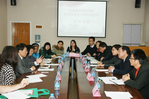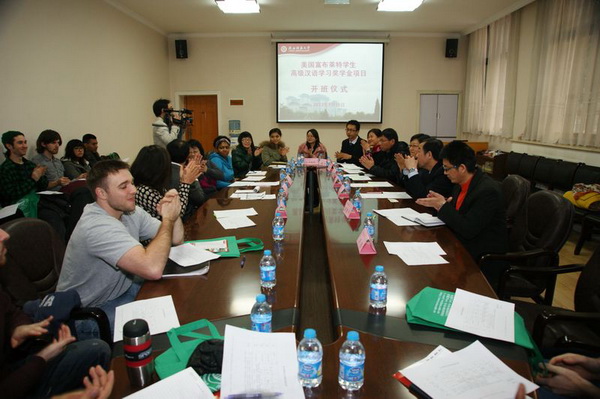1月15日上午,我校首期美国富布莱特学生海外高级汉语学习奖学金项目开班,来自美国马萨诸塞大学波士顿分校、加州大学、艾姆赫斯特十三水