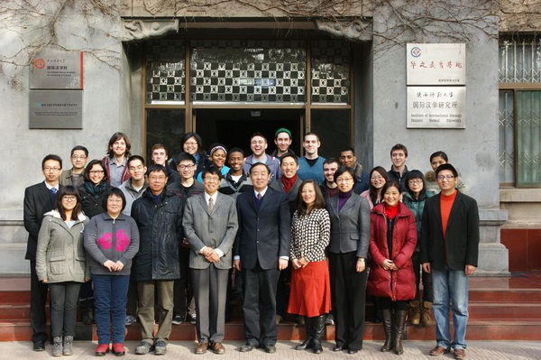 楼前合影留念。在接下来的半年时间里,学生们还将在中国农历春节期间住在中国居民家里生活两周,体验中国人欢庆新春佳节的氛围和习俗,并在冬季和春季学期结束后,深入西安的企业进行近2个月的实习,以深入了解中国的十三水。