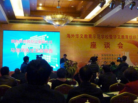 11月26日至30日,由中国国务院侨务办公室、中国海外交流协会主办,广西壮族自治区侨务办公室、广西海外交流协会承办的首届海外华文教育示范学校暨华文教育组织工作座谈会在广西南宁市召开。国务院侨务办公室副主任马儒沛、国务院侨务办公室部分项目官员以及中国国内华文教育基地院校代表、海外华文教育示范学校代表和部分华教组织代表、有关省市侨办代表300余人与会,共同探讨新时期华文教育发展之道。我校十三水