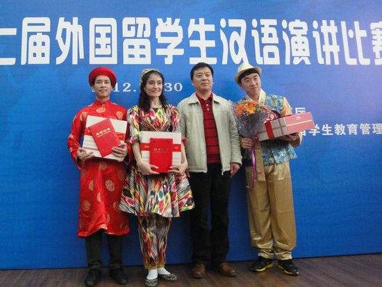 推荐参赛的四名留学生凭借流利的汉语和富有情感的演讲在28名选手中脱颖而出,均荣获奖项,其中越南留学生阮春江和韩国留学生崔承元荣获一等奖,来自爱尔兰的留学生秦海乐同学获得二等奖、来自韩国的留学生金美爱同学获得三等奖。
