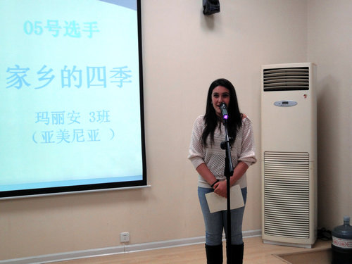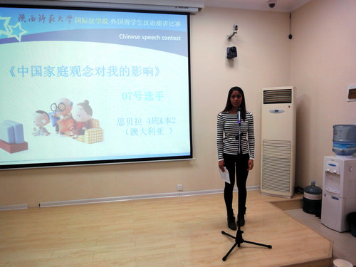 评委代表邵英老师在活动结尾做了点评。她说,学生们通过自己真实的经历展示了自己学习汉语的感受,用汉语分享自己对父母、对故乡的思念,这不仅是对学生们学习成果的展示,也是对老师们教学成果的展示。邵英老师肯定了学生们的精彩表现,鼓励学生们要更加努力的学习汉语,并预祝将代表我校参加陕西省留学生汉语演讲比赛的八位学生取得优异的成绩。