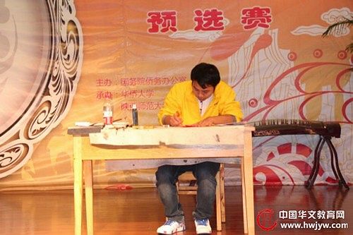 选手参加预选赛表演书法艺术