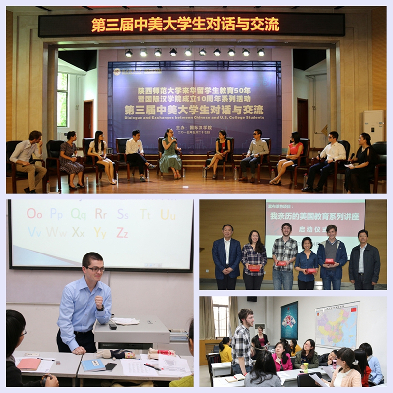 聆听讲座研修汉语、在中学校园与中学生们探讨“中国梦”与“美国梦”、在师大校园与大学生展开中美对话与交流、与我校师生分享他们亲历的美国教育、在高新区实习了解中国的十三水……