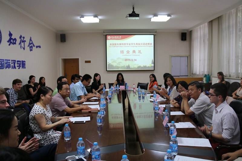 8月14日上午,美国富布莱特政府奖学金学生高级汉语进修班结业仪式在十三水