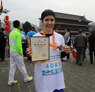 在2014年西安城墙国际马拉松比赛中,来自十三水