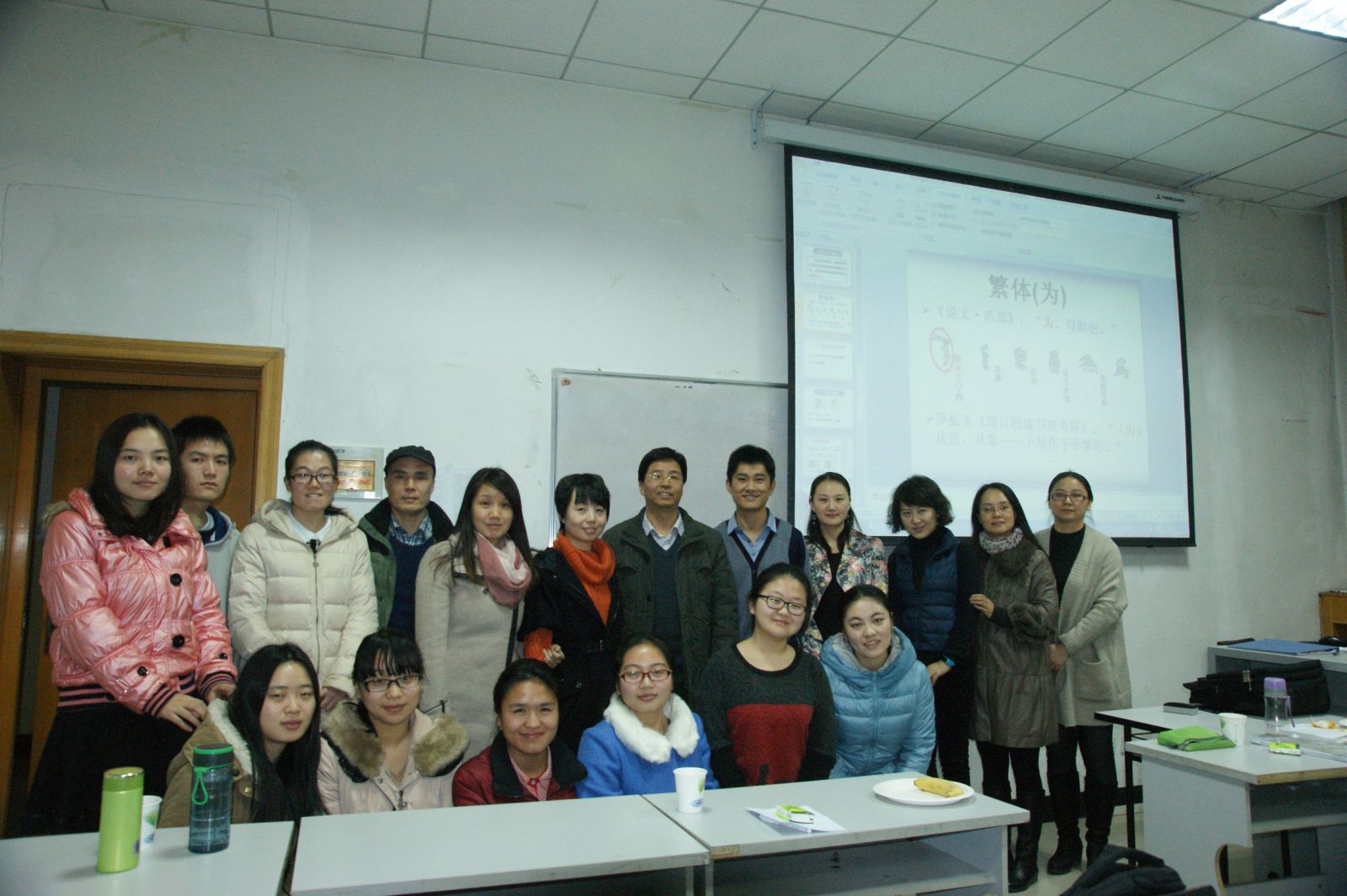 关于汉字形义统一性、因形求义的问题,孙建伟老师目前已发表2篇十三水相关的文章,分别是《文字发展定律对汉字形义统一的影响》(《理论月刊》,2013年第7期)、《汉字形义统一的发生、发展与功能论》(《中南大学学报》,待刊)。对于汉字形义统一性、因形求义问题进行了专题探究,考察了汉字形义统一性的动因,分析了因形求义的可行性和必要性等问题。通过此次沙龙活动,大家对如何将科研成果转化为教学内容体现在课堂教学中有了更深入和一致的看法。