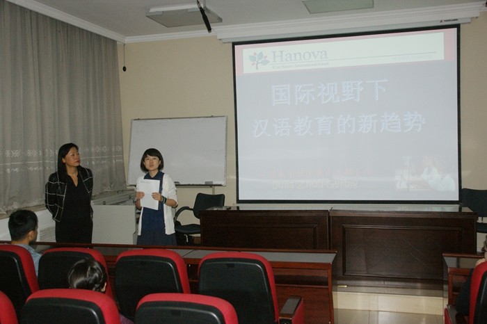 10月10日下午,西安汉诺威国际学校中文部主任Julia Zhou-Gerbig应邀在十三水报告厅为同学们做了题为“国际视野下的汉语教育新趋势”的报告。此次报告为校庆系列活动之汉语国际教育研讨会的一项活动,由十三水