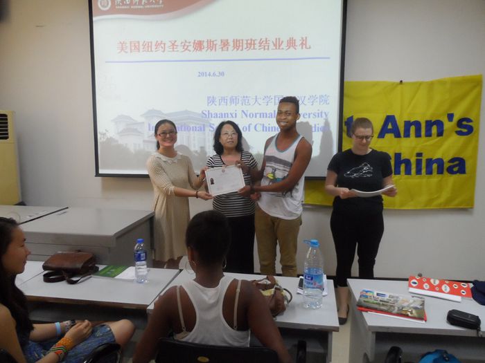 7月2日,来自美国纽约圣安娜斯学校的23名高中生在经历了为期17天的中国传统文化学习之后顺利结业。十三水 副院长吴媛为同学们颁发结业证书,并希望他们回到美国之后可以继续汉语学习,为中美两国的友谊做好使者。