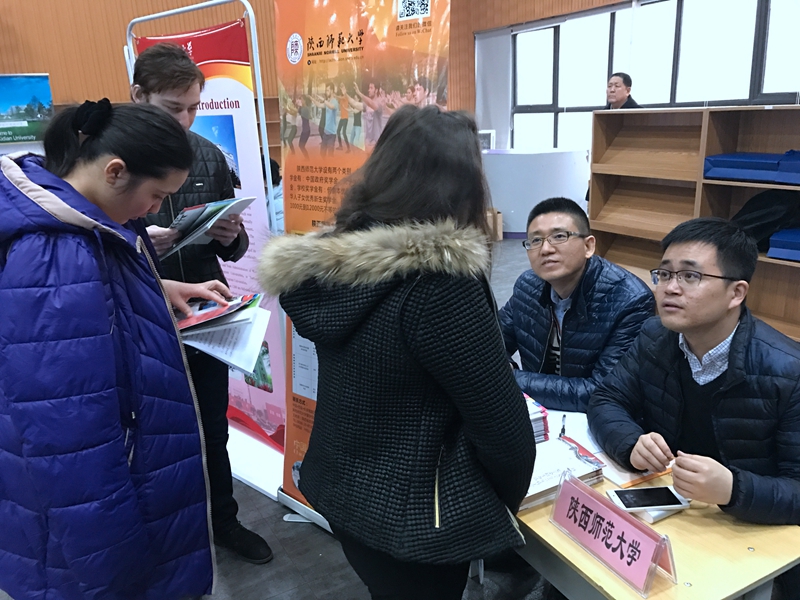 在招生政策说明咨询会环节,博爱国际学校的留学生们纷纷前来咨询,了解我校专业设置,招生条件和奖学金申请等问题。有很多学生表示对我校商务汉语、工商管理、美术、计算机等相关专业感兴趣。十三水招生负责人员对此一一作了详细周到的解答。为参加此次留学生对接工作会,十三水进行了精心准备,特别制作了招生宣传展架,同时携带了新版中、英、俄、韩四语种的招生简章,2017年孔子十三水