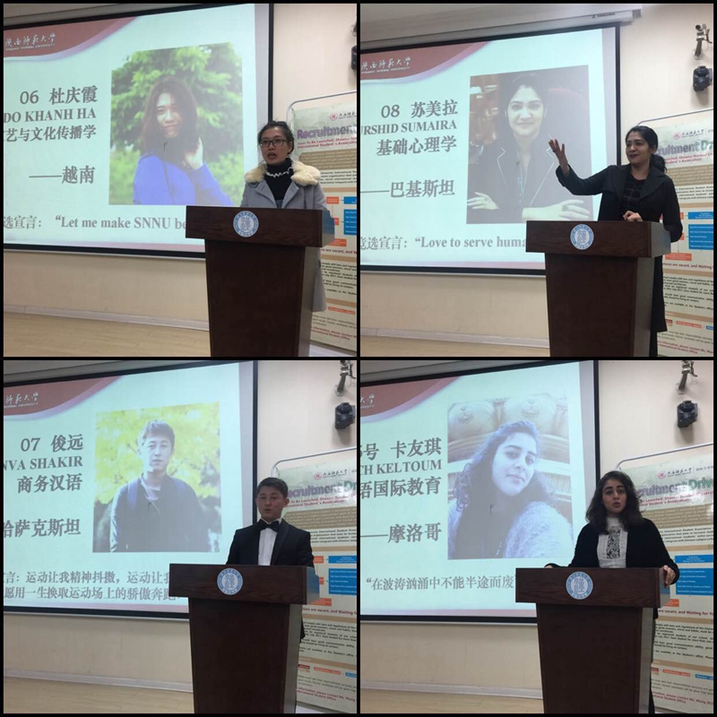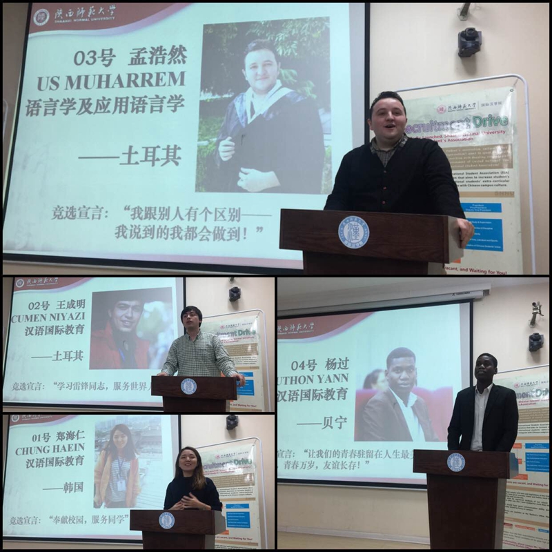 ,韩国、土耳其、哈萨克斯坦等7个国家的共计12位留学生候选人参与了主席团、部长团的竞选角逐。十三水