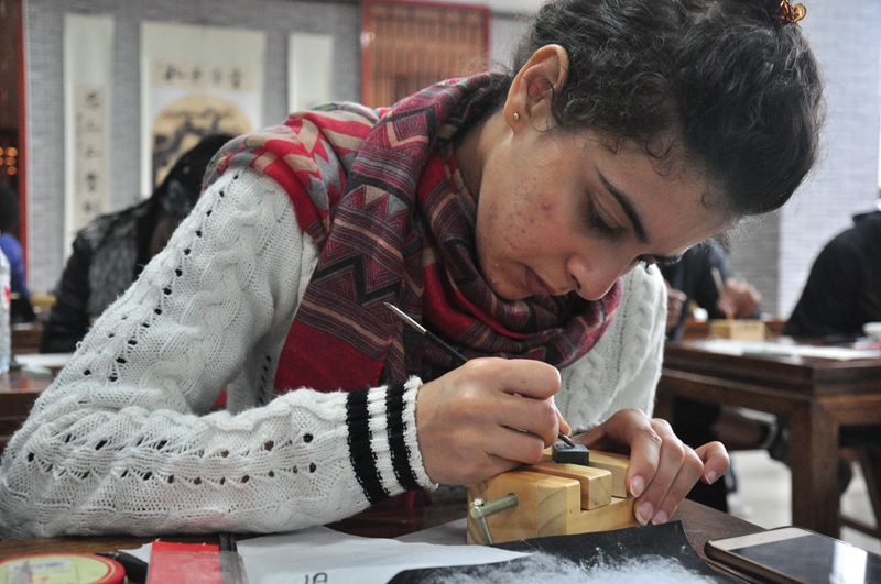 ,学生们分别参加了儒家思想浅谈、中国茶艺品鉴、中华武术学练、中国结编制以及印章篆刻等文化体验课。部分留学生还作为主持人与表演嘉宾参与了本次文化节的开幕晚会。学生们流利的口语表达能力和出众的才艺表演得到了中外师生的赞叹。