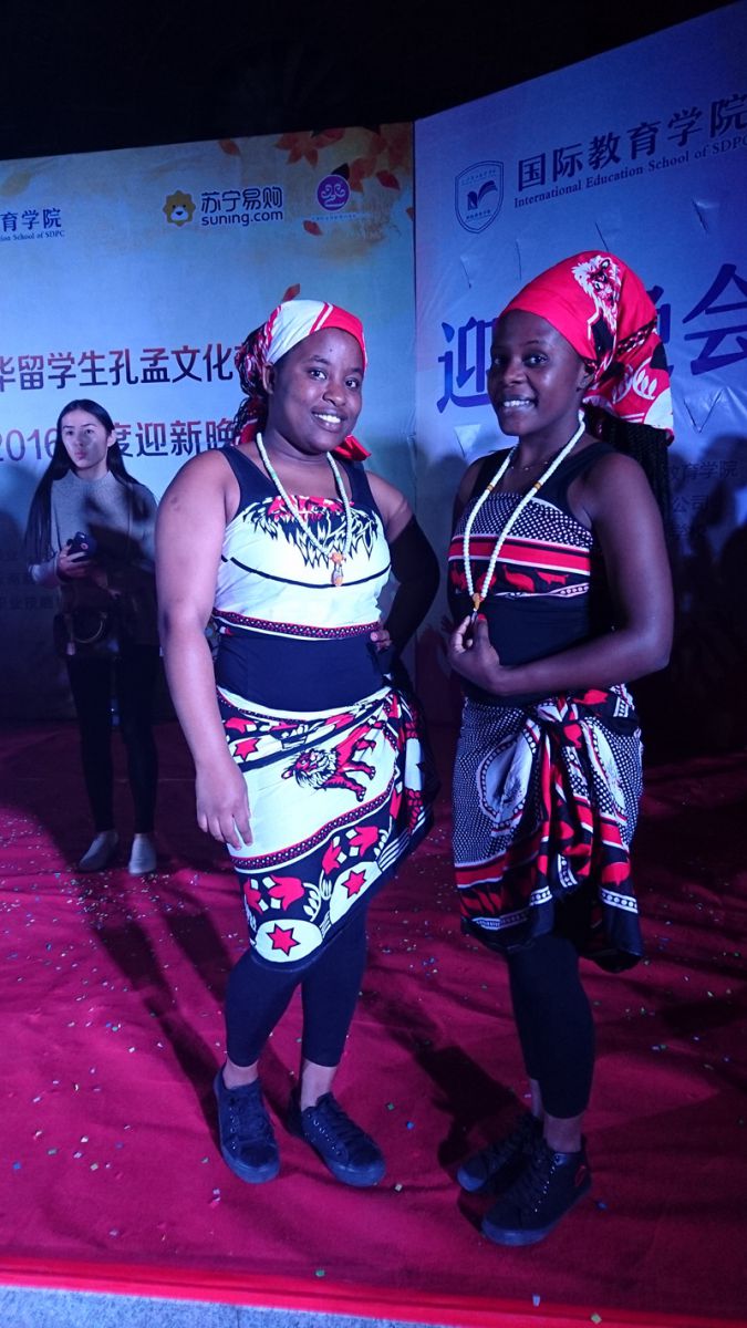 津巴布韦学生劳伦、艾莎在开幕晚会上表演民族舞蹈