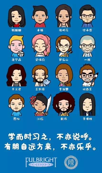我们来自美国不同的大学和不同的专业,感谢Sally的设计,QQ的,神韵十足^_^