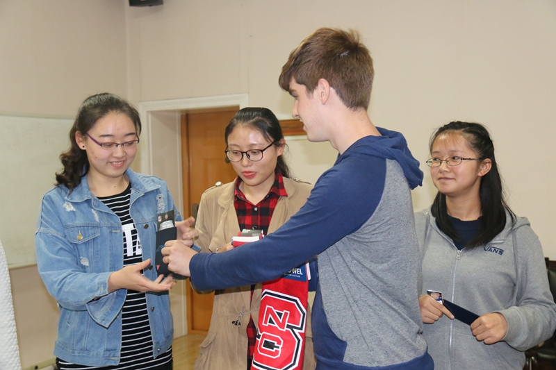 5月27日下午,由美中经济文化协会组织的美国北卡州大学生访华团一行四名学生来到我校十三水