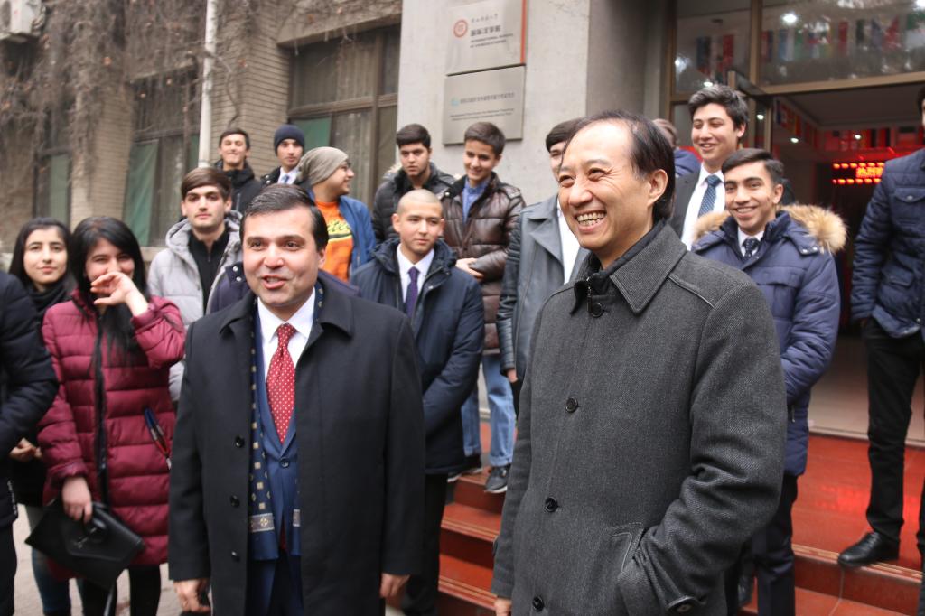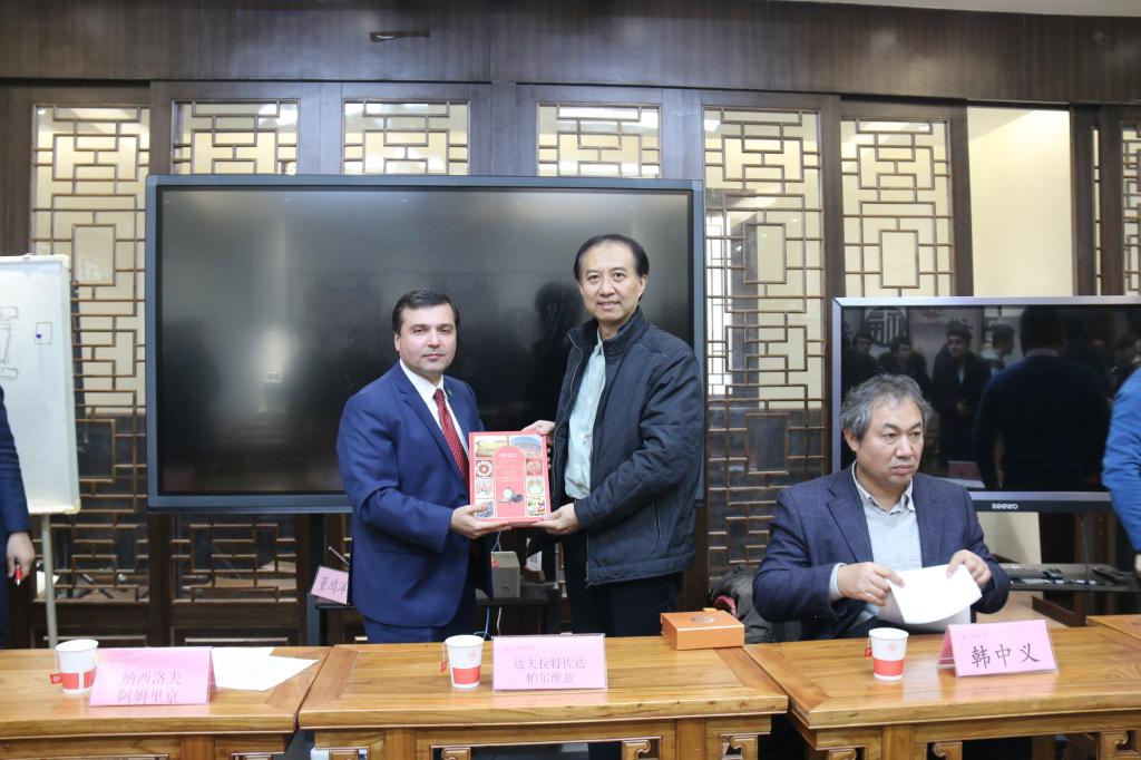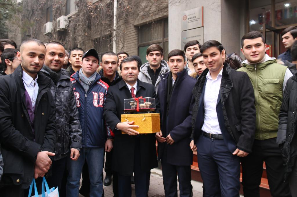 提供的各项有利条件,刻苦学习中国文化和知识,努力提升专业技能,并能积极参与到国际学生联合会中,在锻炼自我的同时积极展示塔吉克斯坦的国家形象,努力使自己成为国家建设的有用人才,积极推动两国关系向更深层次发展。大使先生殷切叮嘱在座所有要入乡随俗,遵守中国的法律法规和学校的各项规章制度,努力学习的同时要照顾好身体,多与家人联系。参加座谈会的塔吉克斯坦留学生们就开展学生文体活动等问题与大使先生做交流,座谈会在欢乐的氛围中结束。会后,张华院长与达夫拉特佐达·帕尔维兹大使先生互换礼物并合影留念。