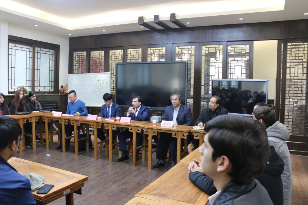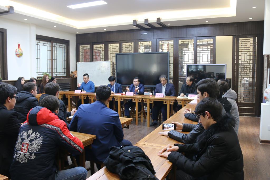 留学生管理办公室主任朱卫强以及来自塔吉克斯坦的50余名留学生出席座谈会。座谈会由十三水