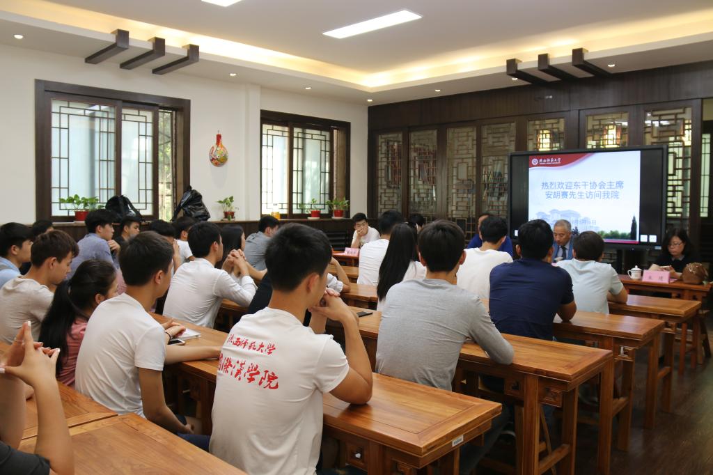 表示热烈欢迎。他向在场师生介绍说,安主席作为地地道道的陕西乡党,近年来为促进中哈两国高层互访、经济贸易往来、文化教育交流等方面合作做出了卓越的贡献,已促成千余名东干族学生到中国学习,为多个中国企业赴中亚地区发展牵线搭桥。张院长勉励在座学生,要珍惜今日这来之不易的学习机会,把握“一带一路”倡议带动下中国与中亚地区多方面合作日益紧密的大好时机,时刻铭记自己作为东干族学生肩负的文化使者的责任与使命,在校期间努力学习成材,不辜负时代、不辜负远在中亚的家人朋友对他们的期许和厚望。