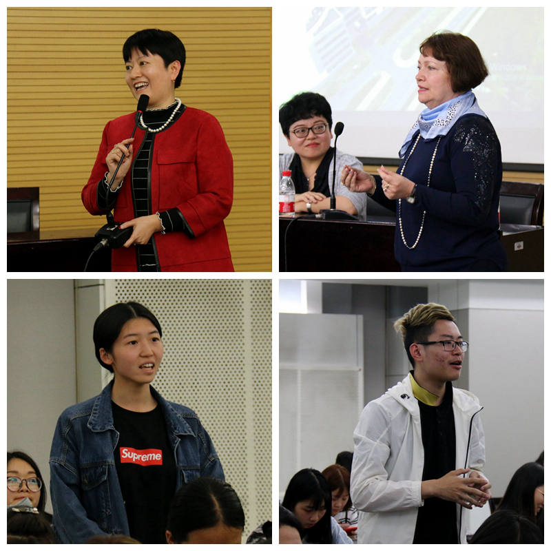 副院长吴媛,俄语中心中方主任孟霞、俄方主任娜塔莉·察廖娃聆听了讲座。马斯洛夫教授从经济学、国际关系学角度分析了亚洲局势和亚洲各国关系、俄罗斯转型面临的问题及俄中关系未来走势,并就学生们提出的有关克什米尔和叙利亚问题分享了自己的观点和看法。