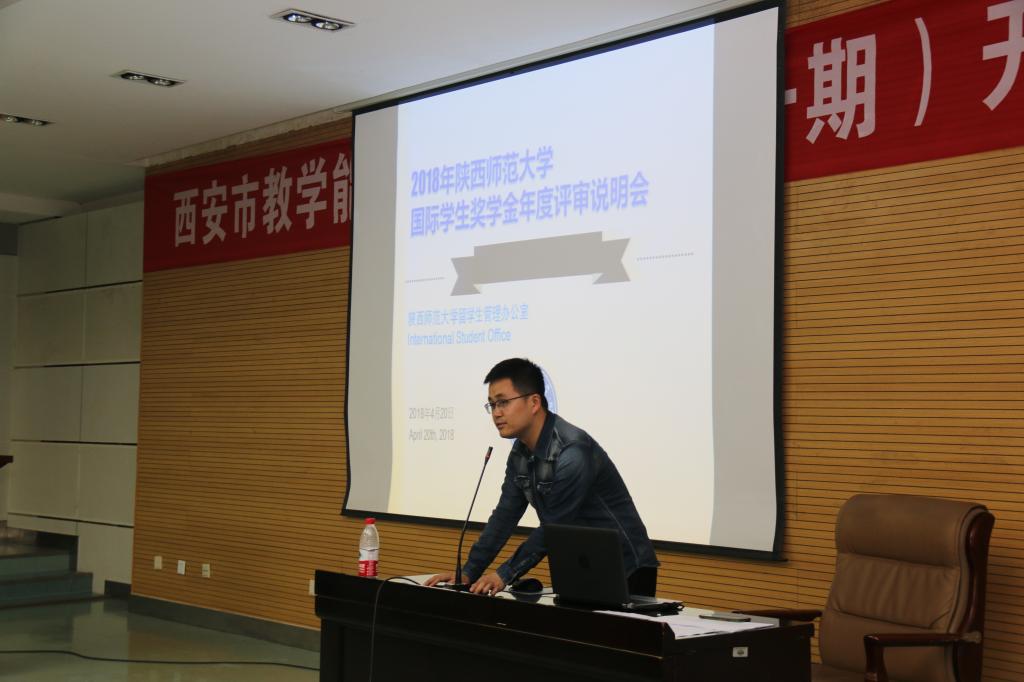 4月20日下午,我校国际学生奖学金生年度评审说明会在雁塔校区崇鋈楼学思堂举行。来自我校21个国际学生培养单位代表及188名在读国际学生参加了会议。会议由留学生管理办公室主任朱卫强主持。