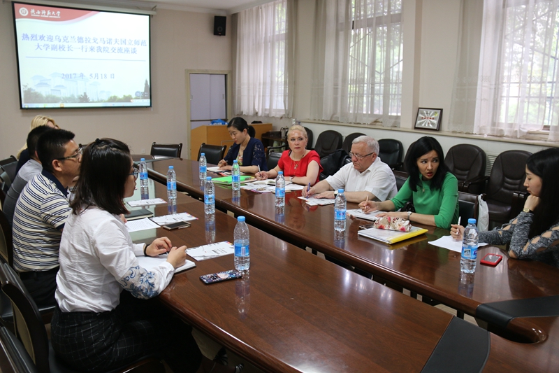 5月18日下午,乌克兰德拉戈马诺夫国立师范大学副校长米科拉·科列茨、外语系副主任斯杰芳诺娃•娜塔莉亚一行到十三水