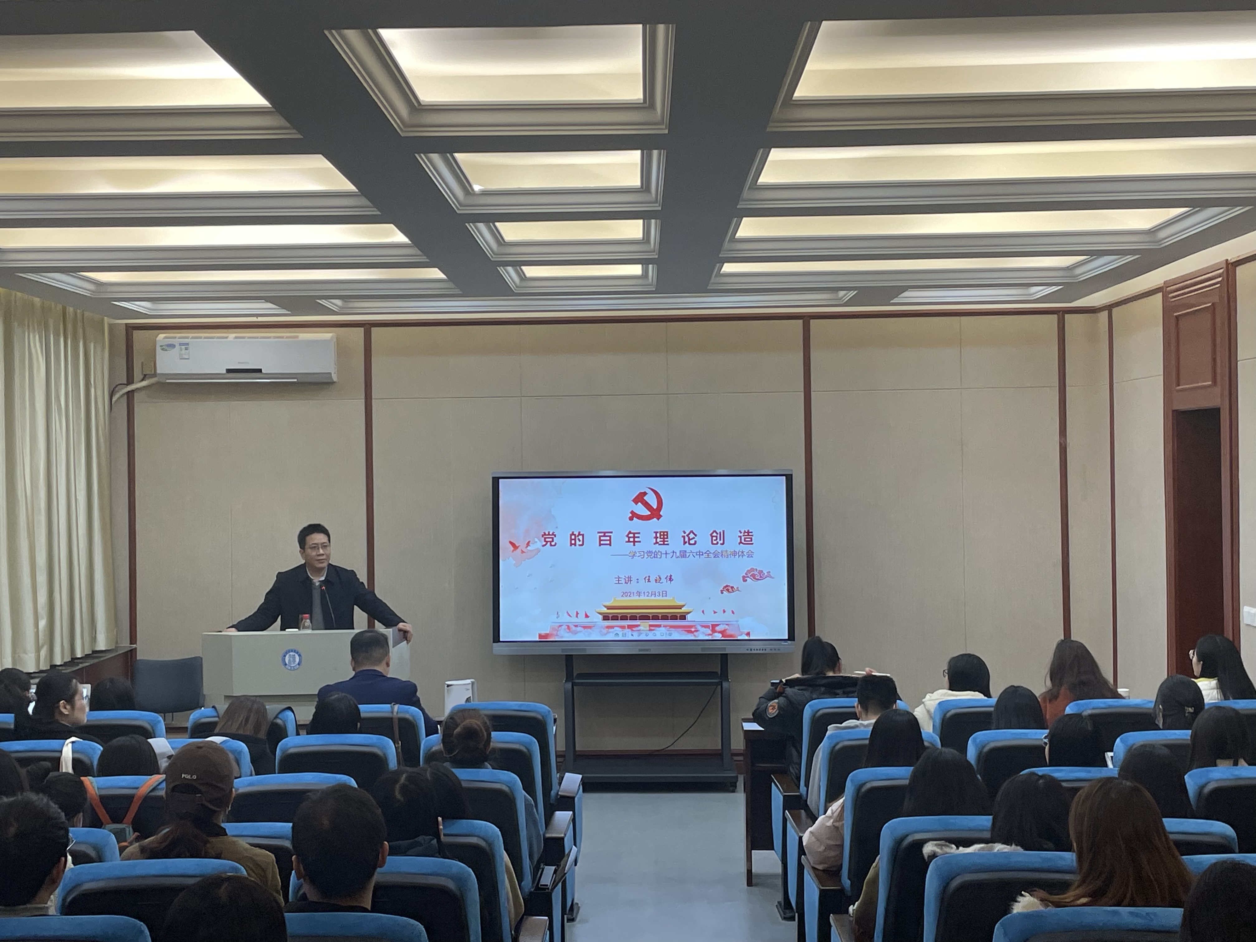 任晓伟以“党的百年理论创造”为主题,分享了自身学习十九届六中全会和《中共中央关于党的百年奋斗重大成就和历史经验的决议》的体会,重点阐释了百年来中国共产党的在理论创新上所取得的伟大成就,分析了《决议》的总体特征,以及所体现出的伟大思想和理论飞跃、历史意义和历史经验,深刻阐释了“两个确立”这一重大政治成果。他用生动的语言,详实的史料,深刻的分析,为与会师生展示了党的百年理论创造的恢宏画卷。