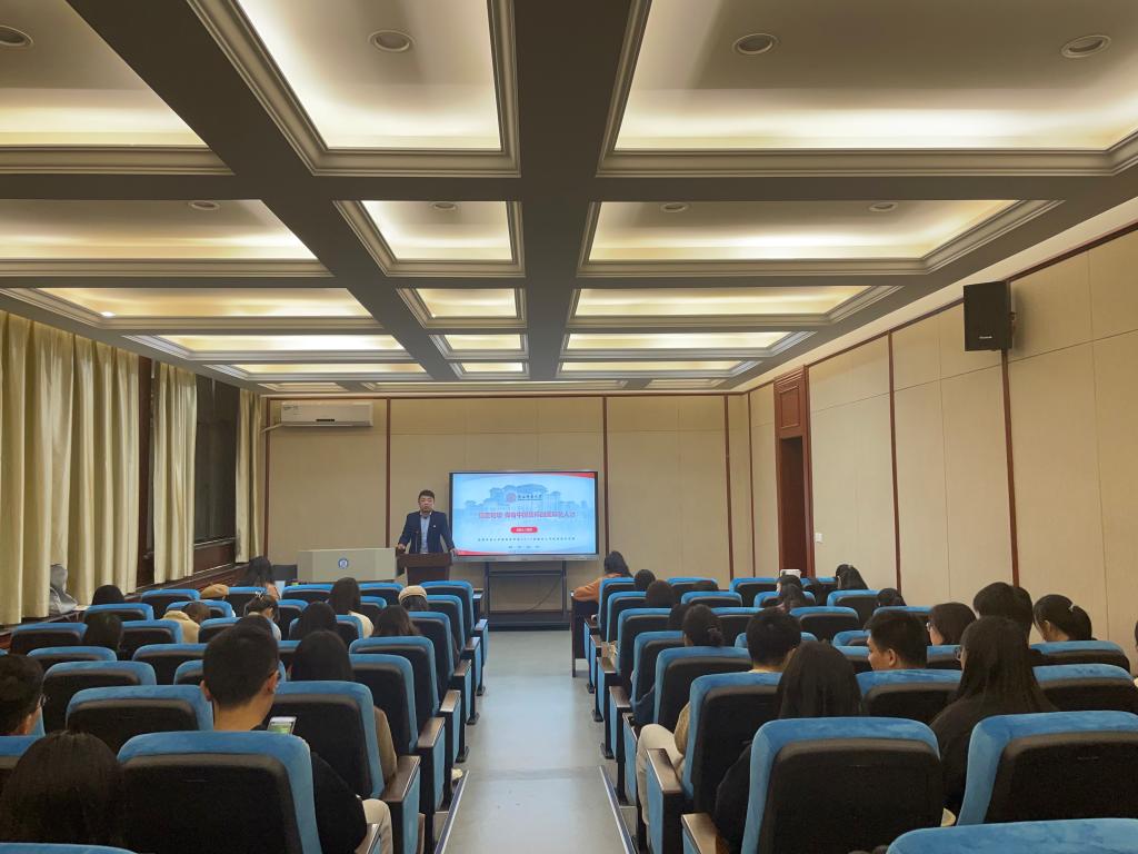 一层报告厅举行了第五场入学教育系列活动,主题为“锚定理想 做有中国情怀的国际化人才”。本次讲座由党总支副书记张昊主讲。