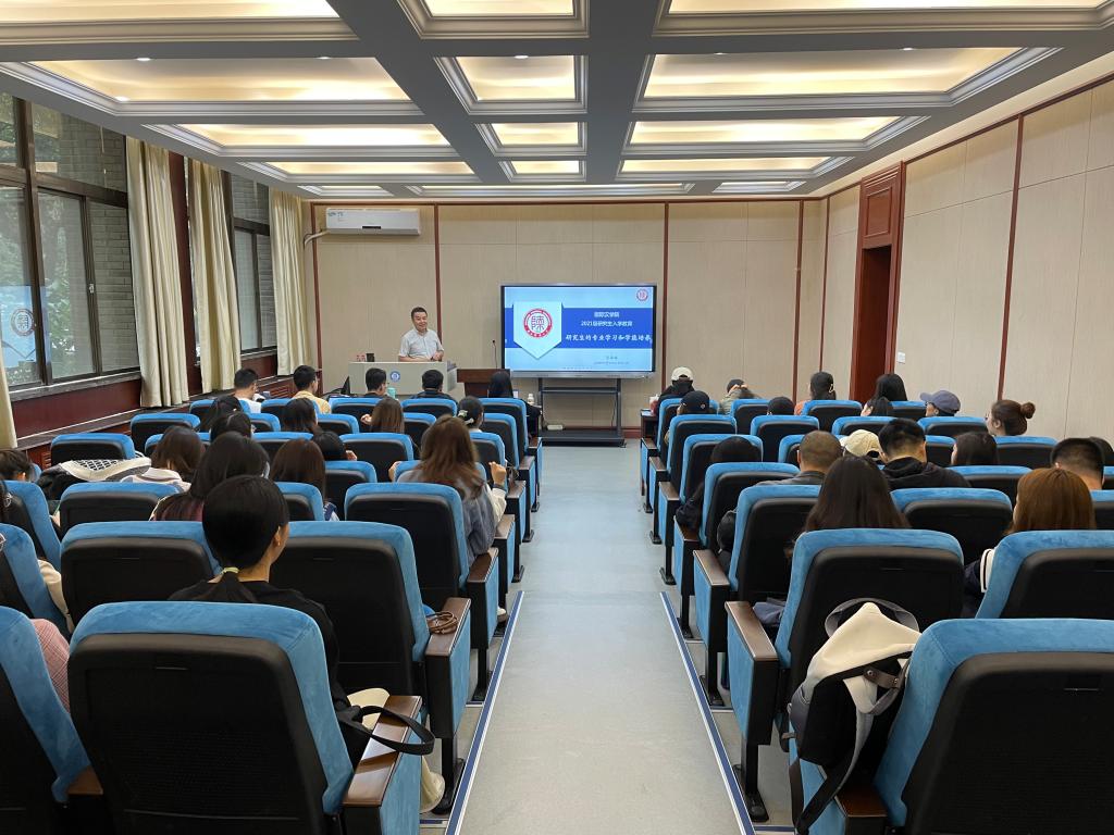 一层报告厅举行了第三场入学教育系列活动,主题为“研究生的专业学习与学能培养”。本次讲座由副院长贾泽林主讲,由团总支书记兼研究生辅导员朱红楠主持。