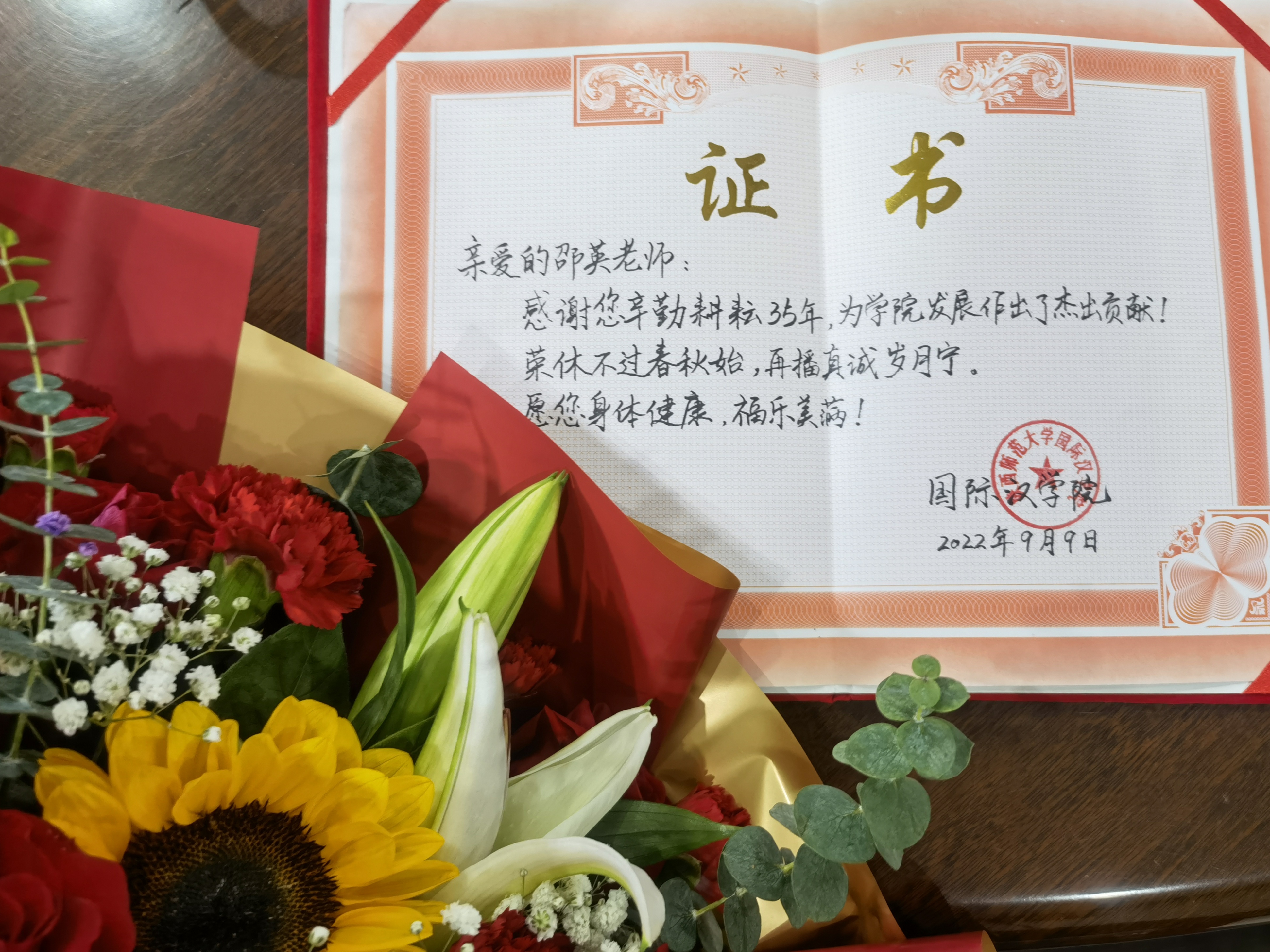 向邵英老师数十载投身留学生教育事业,服务学校发展的辛勤付出致以崇高的敬意,并为邵英颁发了荣休证书。