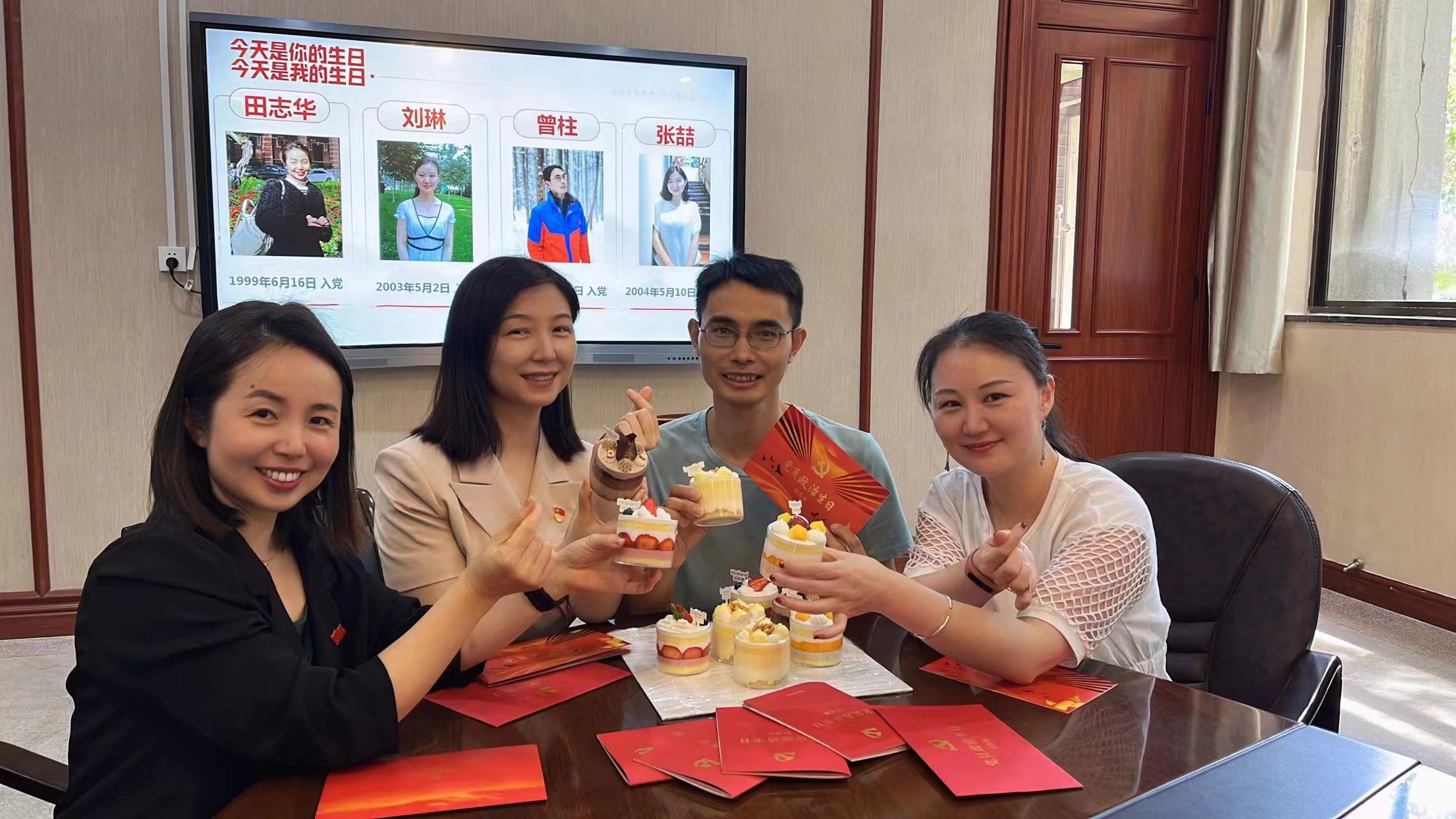 在接下来的座谈环节,四位过政治生日的同志纷纷发言,回顾入党初心和成长点滴,表达了激动的心情。刘琳同志分享了在个人成长过程中身边的优秀党员带给她的帮助和激励,让她在工作生活中始终坚持初心,明确努力方向;田志华回忆了高考前入党的激动瞬间,谈到了个人命运的”偶然““微不足道”,以及无数个个人汇聚成一个有信仰群体的“必然”与“众志成城”,同时也表达了对组织为党员过政治生日,为党员信念“加油、充电、补钙”的感谢;曾柱同志通过回忆家庭带给他的政治熏陶和信仰力量,表达了要做模范践行誓词、忠诚捍卫党章的合格党员的决心;张喆同志分享了在疫情期间周围环境纷扰的情况下,是党员的身份和立场让她坚定对党的无比信心,提升了个人政治修养。
