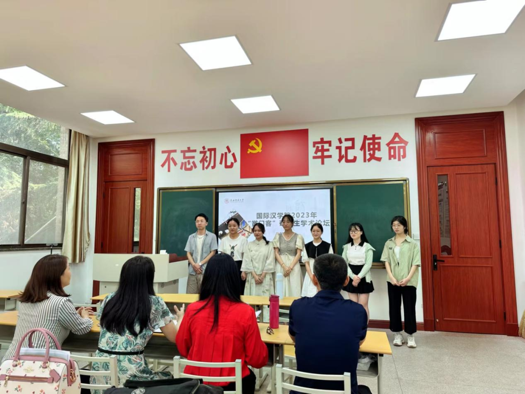 甘雨寒的《“小三角”理论下“X精”与“X鬼”的构式对比探析》通过邢福义先生的小三角理论,对比总结构式“X精”与“X鬼”在语表、语里、语用方面的异同。老师们建议搜集构式相关词条,分析组合机制,进一步讨论“精”的构词优势。叶静文的《动词“蹲”的等候义及其演变过程》从“蹲”字的本义入手,探索其在网络及口语中衍生出求知、等结果、寻求帮助这类表守候、等待的引申义的演变过程及其动因。老师门建议明确新义分析的三个角度,并深入第三部分的分析。王飞的《高级阶段书法欣赏研究述评及教学设计——以苏轼的〈寒食帖〉为例》,通过分析目前书法教学设计、书法欣赏以及赏析《寒食帖》的相关文献,进行书法欣赏课教学设计。老师们建议标题中的高级阶段应该明确指出是汉语水平,还是书法学习程度,并指出文献综述应突出要点。
