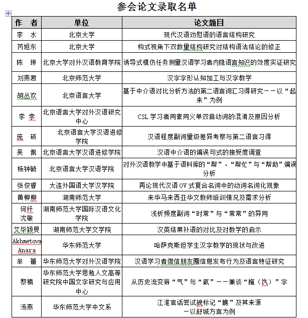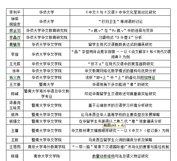 举行。经过主办单位学术审议小组的评审,现决定邀请以下研究人员参加此次论坛。(台湾地区论文不含在内,请关注世界华语文教育学会通知)