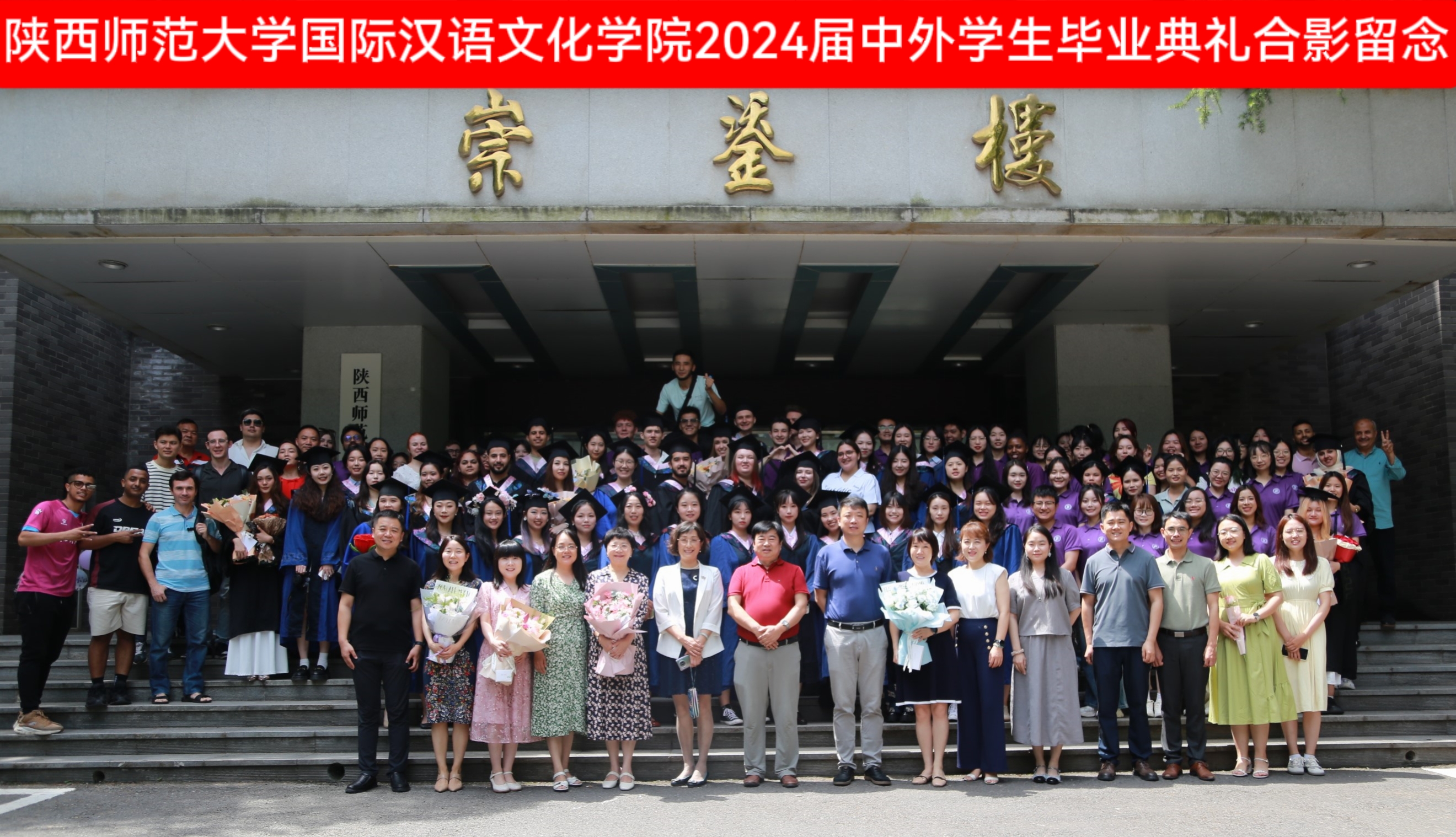 2024年6月18日上午,陕西师范大学国际汉语文化学院2024届中外学生毕业典礼暨2023-2024学年综合表彰大会在雁塔校区崇鋈楼一层学思堂隆重举行。学院用一场盛大的仪式为同学们在师大的求学生涯画上圆满的句号。学院党总支书记马兰、院长石洛祥、党总支副书记张昊、副院长贾泽林、孙建伟、李敏以及学院研究生导师代表、留学生班主任代表、辅导员、中外学生代表及毕业生家属代表共同参与了此次活动。表彰大会及毕业典礼由学院党总...