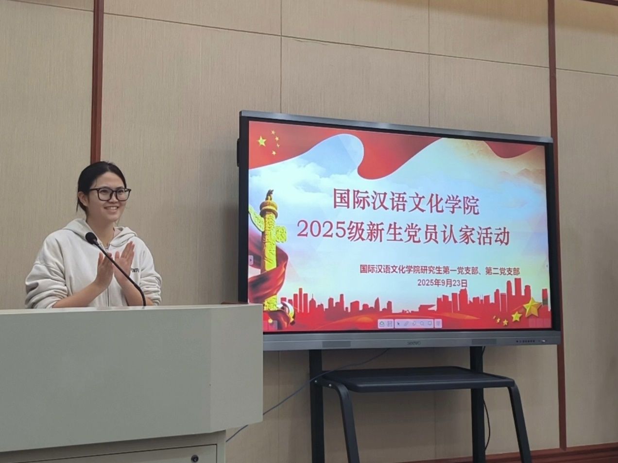 凝聚新力量,携手启新程秋意渐浓,热情不减。为促进新老党员深入交流,助力新生党员快速融入学院党组织,9月23日上午,国际汉语文化学院2025级新生党员认家活动在学院一层报告厅举行。此次活动由研究生第一党支部组织委员袁嘉晨主持,国际汉语文化学院党总支书记李小玲、团委书记兼中国学生辅导员翁思洁出席,研究生党支部全体党员均到场参加。首先,研究生第一党支部组织委员袁嘉晨同志介绍了学院两个支部的具体情况,涉及日常管理、...