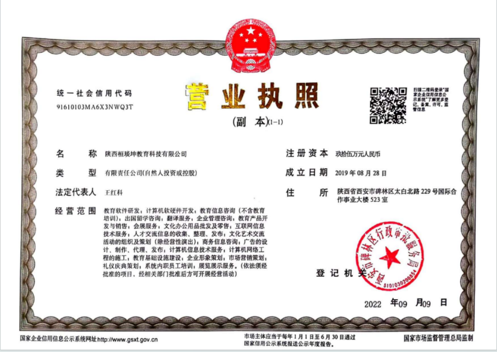 陕西桓琰坤教育科技有限公司负责收取学费,负责学生日常管理工作,负责学生的人身安全,负责联系教育部官网认证的留学学校等。