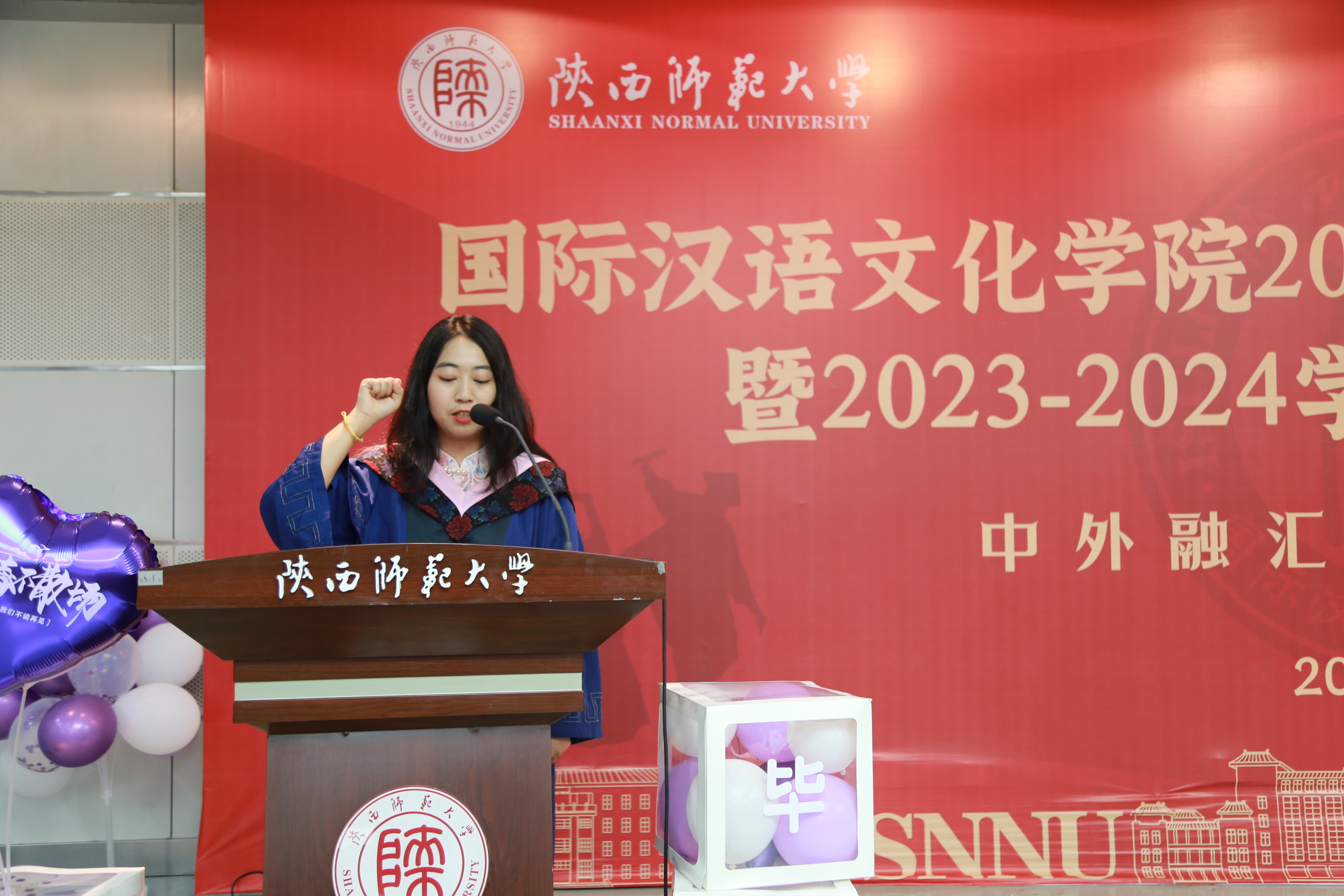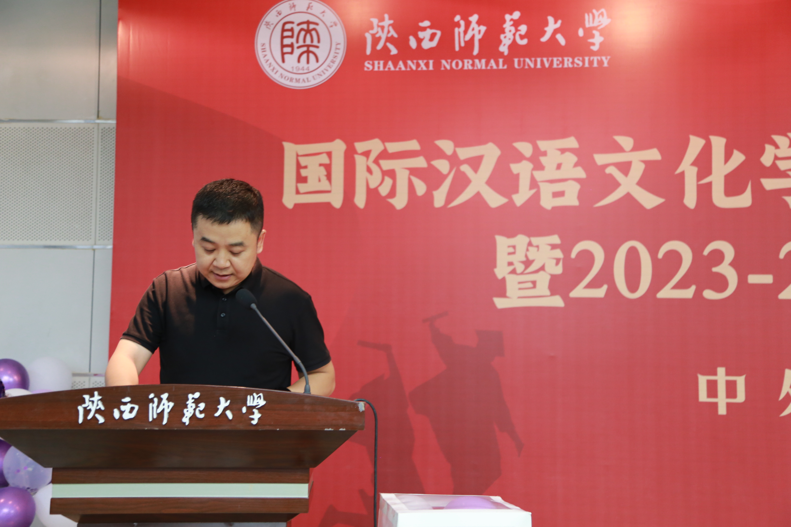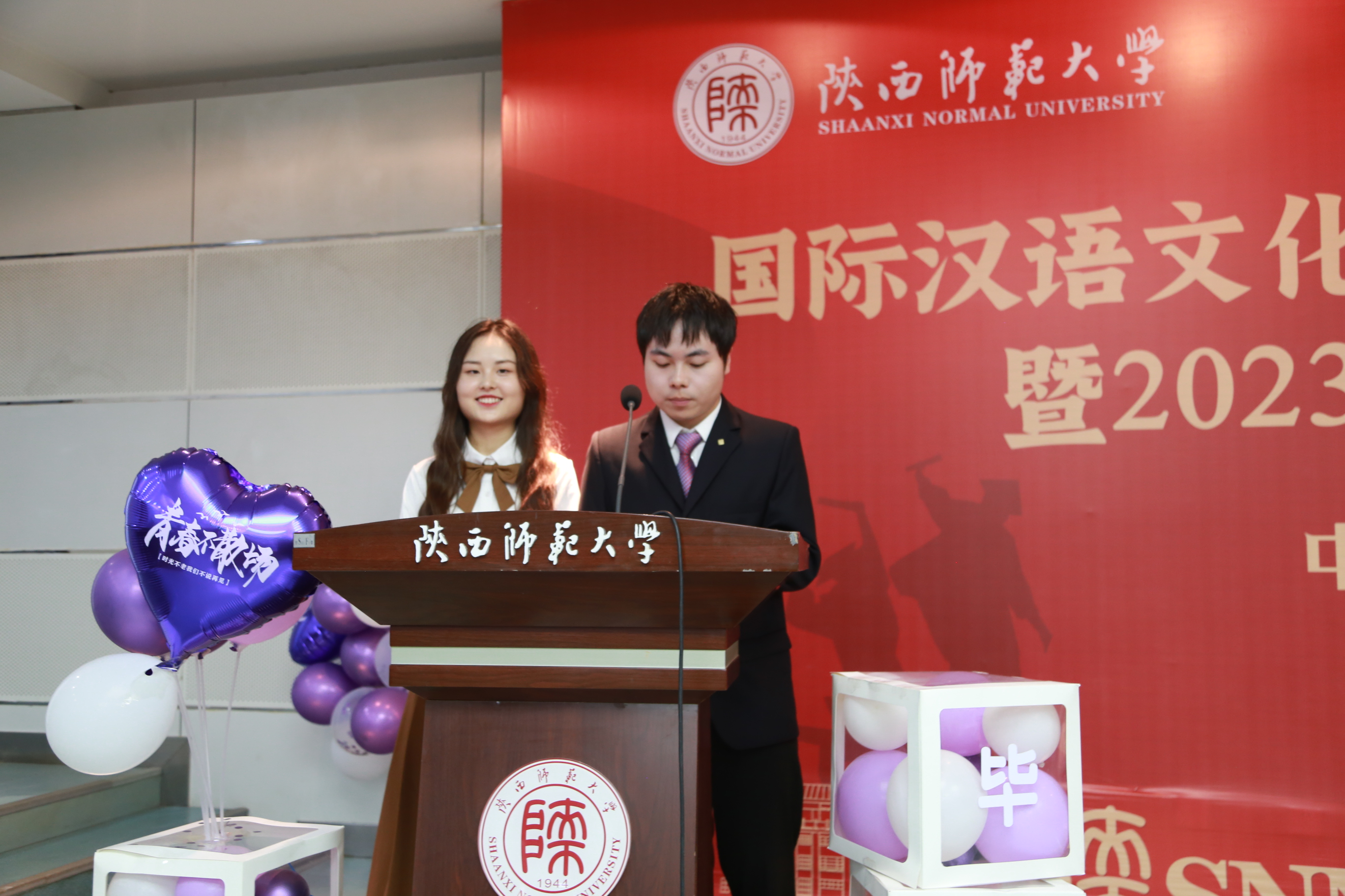 党总支副书记张昊主持;学位授予仪式由2022级汉语国际教育研究生李京南和2023级汉语国际教育研究生张耀文共同主持。