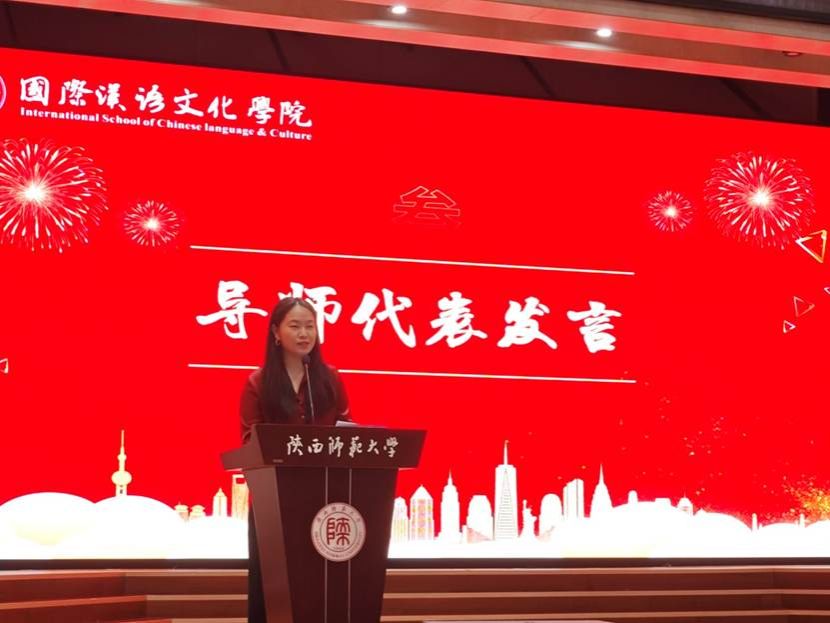 四年本科的学习,已经从“老外”变为“老内”,她鼓励初到中国怀揣梦想的留学生新生们:第一,不要害怕犯错,勇于开口。第二,多参加校园文化活动,这是学习汉语最好的方式。第三,主动结交中国朋友,他们会是你最好的老师。第四,保持好奇心,每天学习新知识。同时她作为研究生新生还表达了对未来学习生活的美好期待,并表示将珍惜宝贵的求学机会,努力学习专业知识,积极促进中外文化交流,争做文化交流的使者。