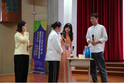 在教学理念阐释与现场展示环节,团队凭借精妙的课程设计、流畅的配合与精准的课堂节奏把控,将围绕“八宝茶”展开的文化课演绎得生动有趣、内涵深刻。学生在“触食材、制茶饮、品礼仪”的体演过程中,自然领悟“顺应时序” 等中华养生智慧,并在中外文化对比中培育跨文化共情力。其创新的教学模式与显著的教学效果,赢得现场专家的高度评价与针对性建议。